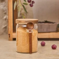 Bocal Avec Cuillière Et Couvercle En Verre Borosilicate Et Acacia 90cl – Delices